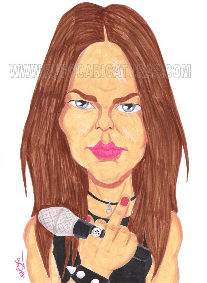 Caricatura de la cantante Avril Lavigne. Acrílicos y rotuladores. El original de 30×40 cm está a la venta por 100 €.También disponibles reproducciones tamaño póster (30x40cm, 5€) y mini-prints (10x15cm, 3€) Info: rufocaricaturas@gmail.com