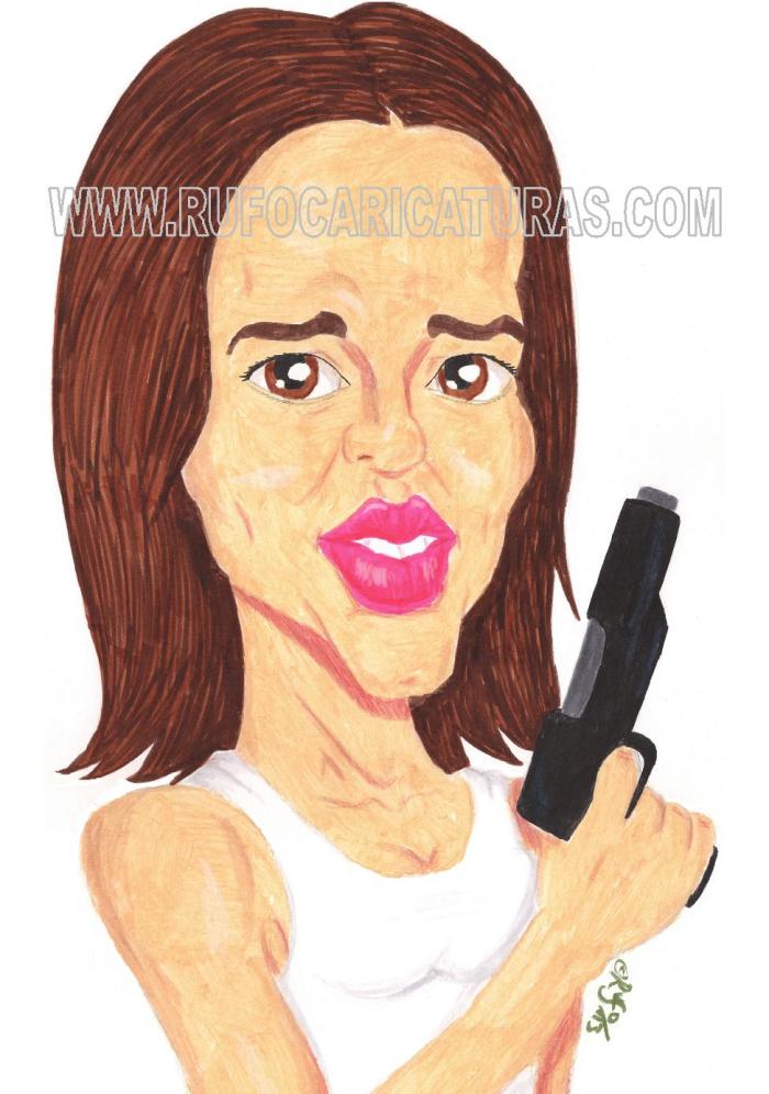 caricatura de Jennifer Garner como Sidney Bristow, protagonista de la serie Alias. Acrílicos y rotuladores. El original de 30×40 cm está a la venta por 100 €.También disponibles reproducciones tamaño póster (30x40cm, 5€) y mini-prints (10x15cm, 3€) Info: rufocaricaturas@gmail.com