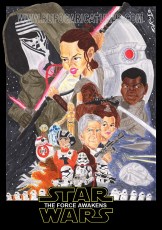 Versión del cartel de la película Star Wars : the Force awakens. Acrílicos y rotuladores. El original de 30×40 cm está a la venta por 300 €.También disponibles reproducciones tamaño póster (30x40cm, 5€) y mini-prints (10x15cm, 3€) Info: rufocaricaturas@gmail.com