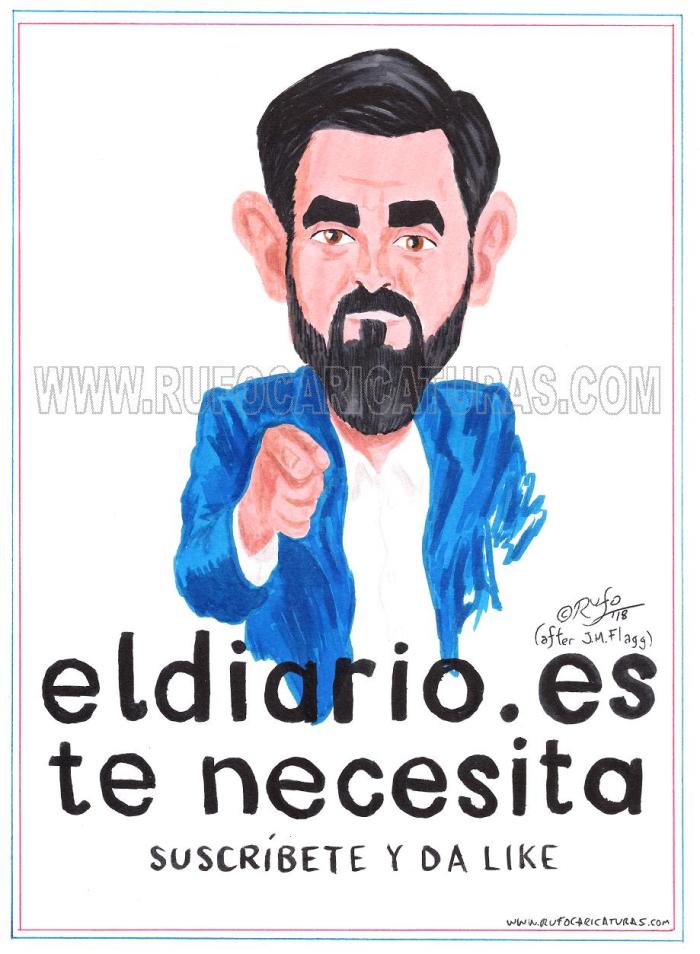 Caricatura del periodista Ignacio Escolar. El original ya ha sido vendido. disponibles reproducciones tamaño póster (30x40cm, 5€) y mini-prints (10x15cm, 3€) Info: rufocaricaturas@gmail.com