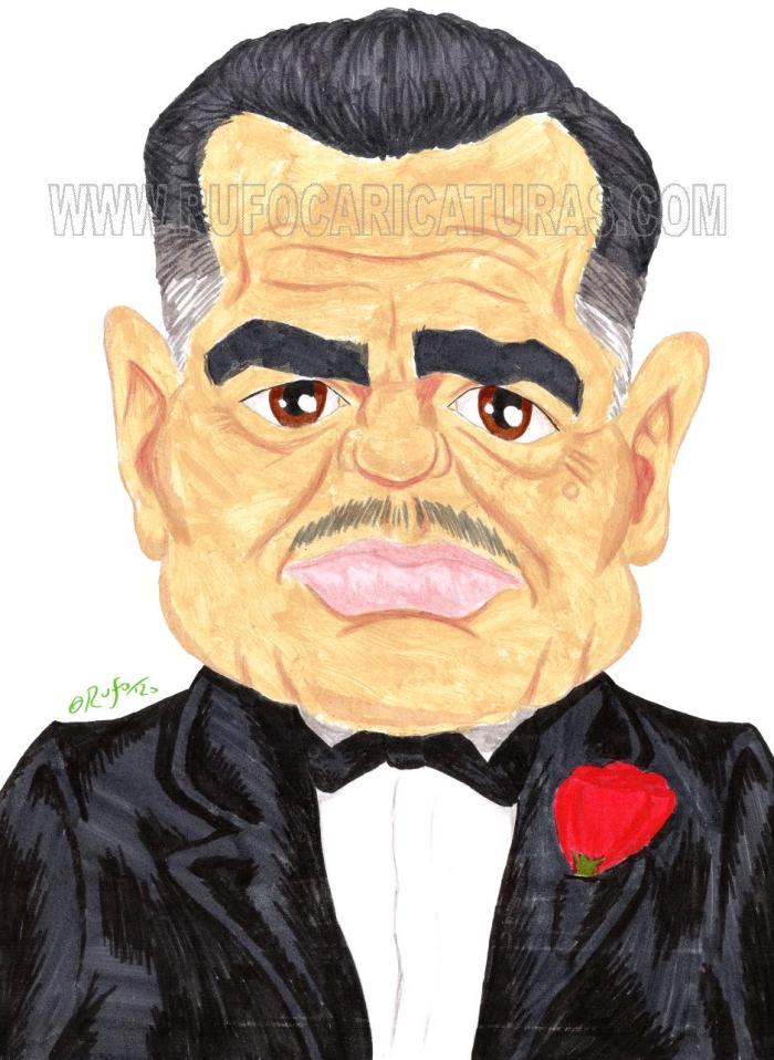 Caricatura de la película El padrino.Acrílicos y rotuladores. El original de 30×40 cm está a la venta por 100 €.También disponibles reproducciones tamaño póster (30x40cm, 5€) y mini-prints (10x15cm, 3€) Info: rufocaricaturas@gmail.com
