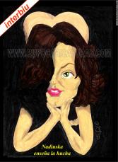 Caricatura de la portada Interviú de Nadiuska. Acrílicos y rotuladores. El original de 30×40 cm está a la venta por 100 €.También disponibles reproducciones tamaño póster (30x40cm, 5€) y mini-prints (10x15cm, 3€) Info: rufocaricaturas@gmail.com