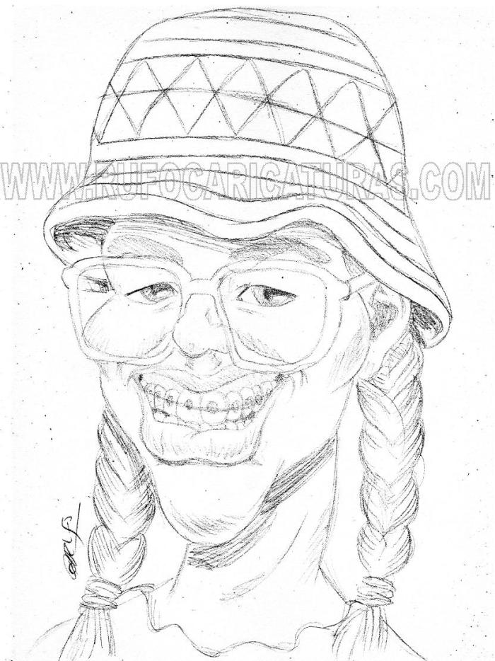 Caricatura de Laura Esquivel en la serie Patito feo. Lápiz. El original de 20×30 cm está a la venta por 30 €. Posibilidad de colorearlo por 20€ más. Info: rufocaricaturas@gmail.com