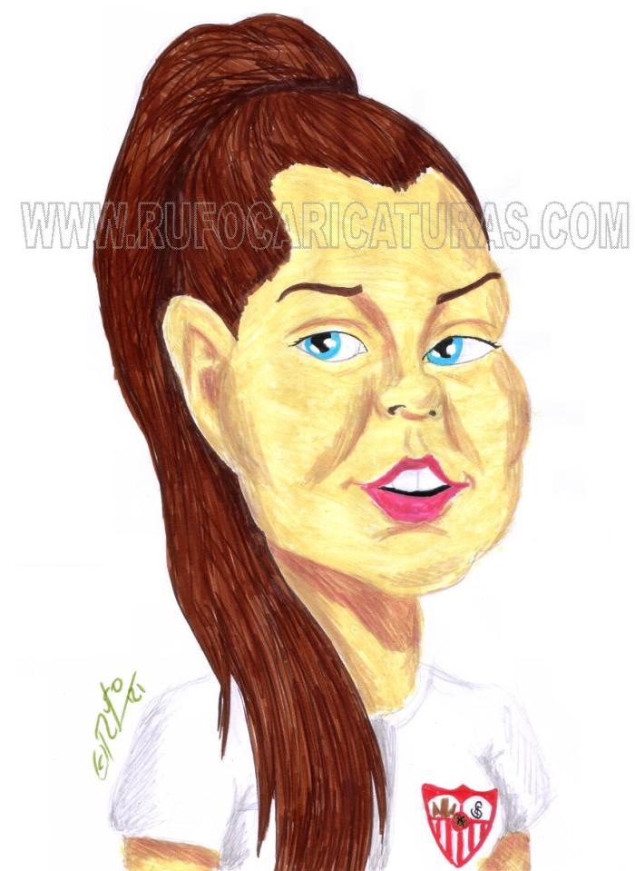 Caricatura de la futbolista Claudia Pina. Acrílicos y rotuladores. El original de 20×30 cm está a la venta por 50 €.También disponibles reproducciones tamaño póster (30x40cm, 5€) y mini-prints (10x15cm, 3€) Info: rufocaricaturas@gmail.com