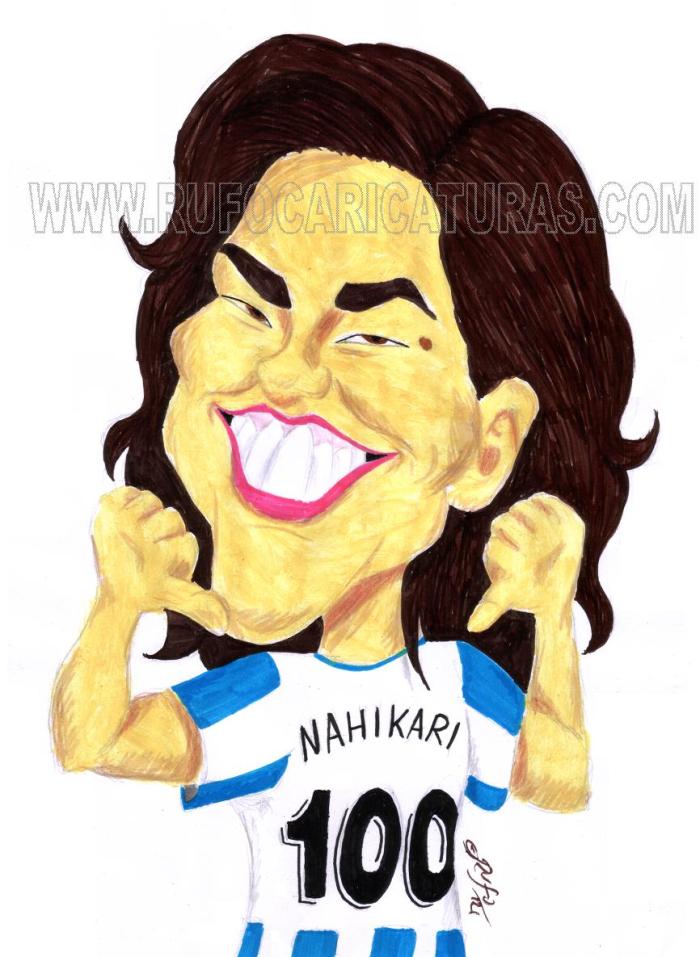 Caricatura de la futbolista Nahikari García. Acrílicos y rotuladores. El original de 20×30 cm está a la venta por 50 €.También disponibles reproducciones tamaño póster (30x40cm, 5€) y mini-prints (10x15cm, 3€) Info: rufocaricaturas@gmail.com