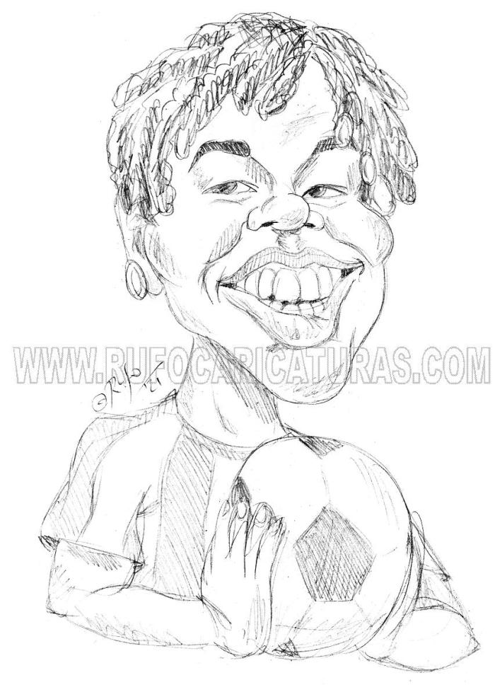 Caricatura de la futbolista Asisat Oshoala. Lápiz. El original de 20×30 cm está a la venta por 30 €. Posibilidad de colorearlo por 20€ más. Info: rufocaricaturas@gmail.com