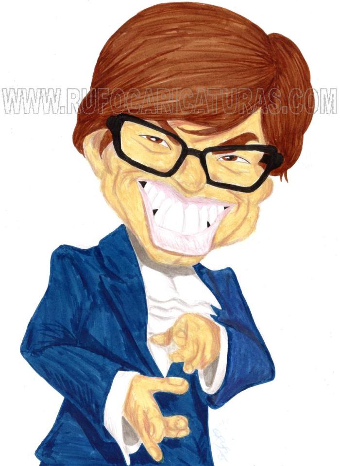 Caricatura de la película Austin powers. Acrílicos y rotuladores. El original de 30×40 cm está a la venta por 100 €.También disponibles reproducciones tamaño póster (30x40cm, 5€) y mini-prints (10x15cm, 3€) Info: rufocaricaturas@gmail.com