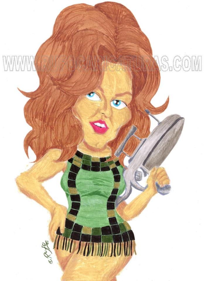 Caricatura de Jane Fonda como Barbarella. Acrílicos y rotuladores. El original de 30×40 cm está a la venta por 100 €.También disponibles reproducciones tamaño póster (30x40cm, 5€) y mini-prints (10x15cm, 3€) Info: rufocaricaturas@gmail.com