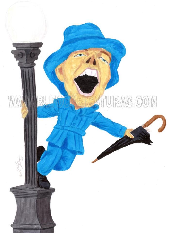 Caricatura de la película Cantando bajo la lluvia. Acrílicos y rotuladores. El original de 30×40 cm está a la venta por 100 €.También disponibles reproducciones tamaño póster (30x40cm, 5€) y mini-prints (10x15cm, 3€) Info: rufocaricaturas@gmail.com