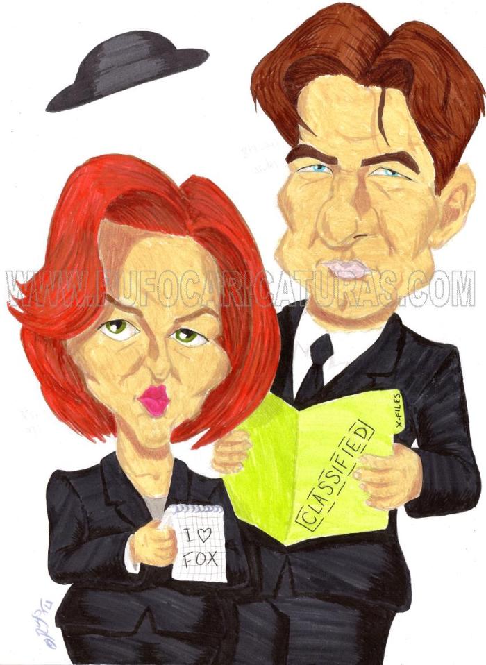 Caricatura de la serie Expediente X. Acrílicos y rotuladores. El original de 30×40 cm está a la venta por 120 €.También disponibles reproducciones tamaño póster (30x40cm, 5€) y mini-prints (10x15cm, 3€) Info: rufocaricaturas@gmail.com