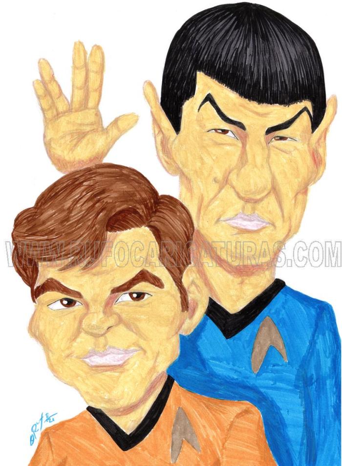 Caricatura de la serie original de Star Trek. Acrílicos y rotuladores. El original de 30×40 cm está a la venta por 120 €.También disponibles reproducciones tamaño póster (30x40cm, 5€) y mini-prints (10x15cm, 3€) Info: rufocaricaturas@gmail.com
