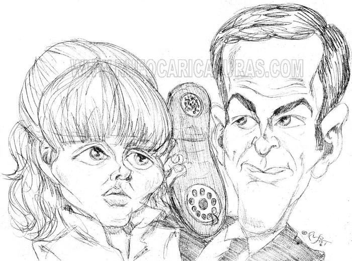 Caricatura de la serie Superagente 86. Lápiz. El original de 30×40 cm está a la venta por 80 €. Info: rufocaricaturas@gmail.com