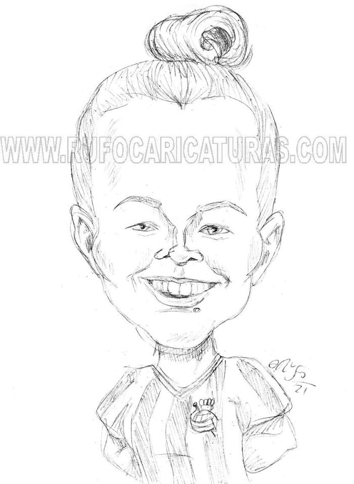 Caricatura de la futbolista Sanni Franssi. Lápiz. El original de 20×30 cm está a la venta por 30 €. Posibilidad de colorearlo por 20€ más. Info: rufocaricaturas@gmail.com