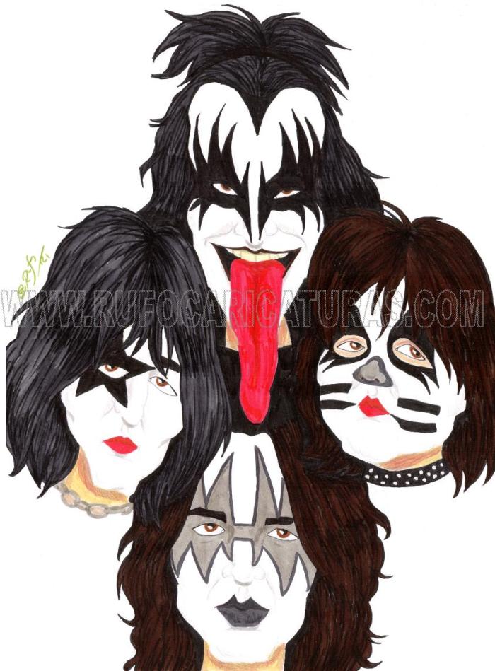 Caricatura del grupo de música Kiss. Acrílicos y rotuladores. El original de 30×40 cm está a la venta por 160 €.También disponibles reproducciones tamaño póster (30x40cm, 5€) y mini-prints (10x15cm, 3€) Info: rufocaricaturas@gmail.com