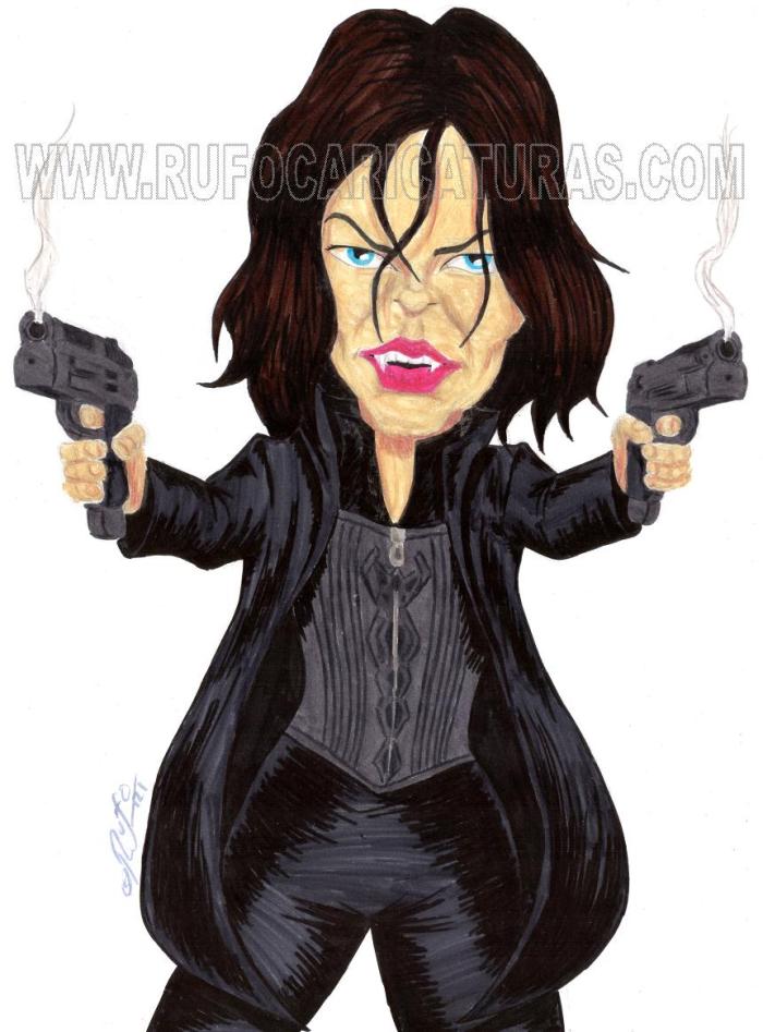 Caricatura de Kate Beckinsale en Underworld. Acrílicos y rotuladores. El original de 30×40 cm está a la venta por 100 €.También disponibles reproducciones tamaño póster (30x40cm, 5€) y mini-prints (10x15cm, 3€) Info: rufocaricaturas@gmail.com