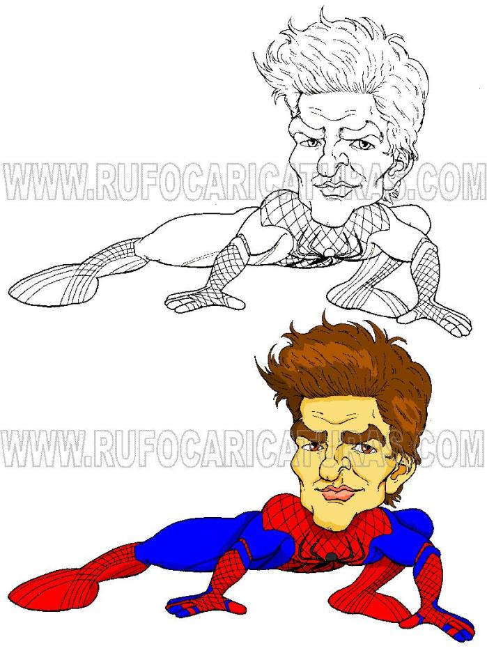 Caricatura de Andrew Garfield para la lámina edición limitada de los Spider-man. El original a tinta de 20×30 cm está a la venta por 40 €. Info: rufocaricaturas@gmail.com