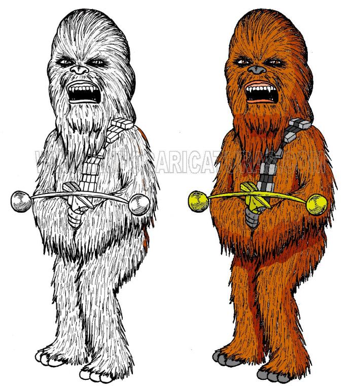 Caricatura de Chewbacca para la lámina edición limitada de Star Wars. El original a tinta de 20×30 cm está a la venta por 40 €. Info: rufocaricaturas@gmail.com