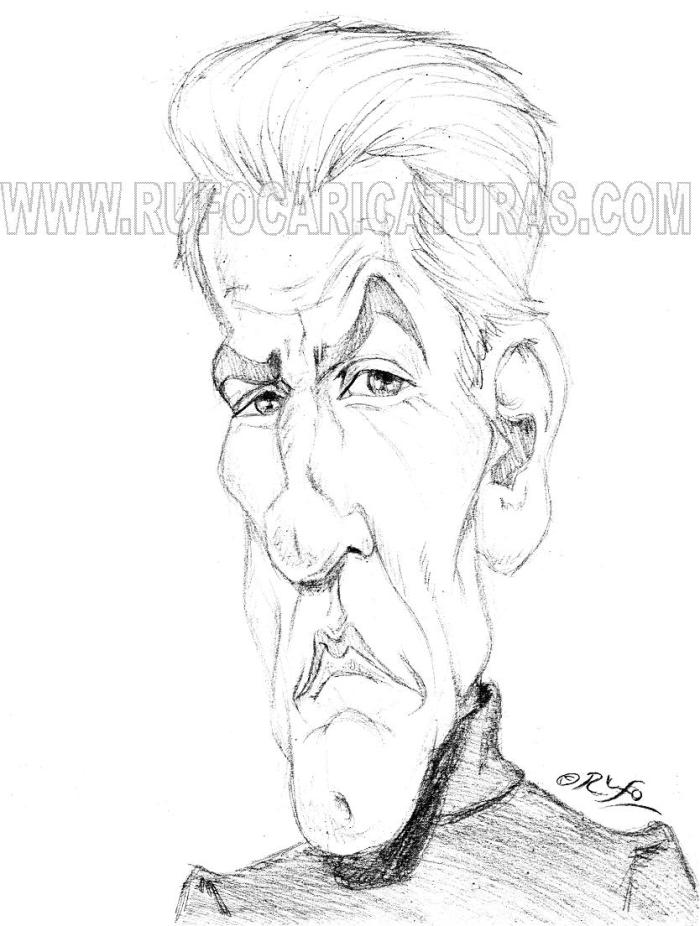 Caricatura del director de cine David Cronenberg. Lápiz. El original de 20×30 cm está a la venta por 30 €. Posibilidad de colorearlo por 20€ más. Info: rufocaricaturas@gmail.com
