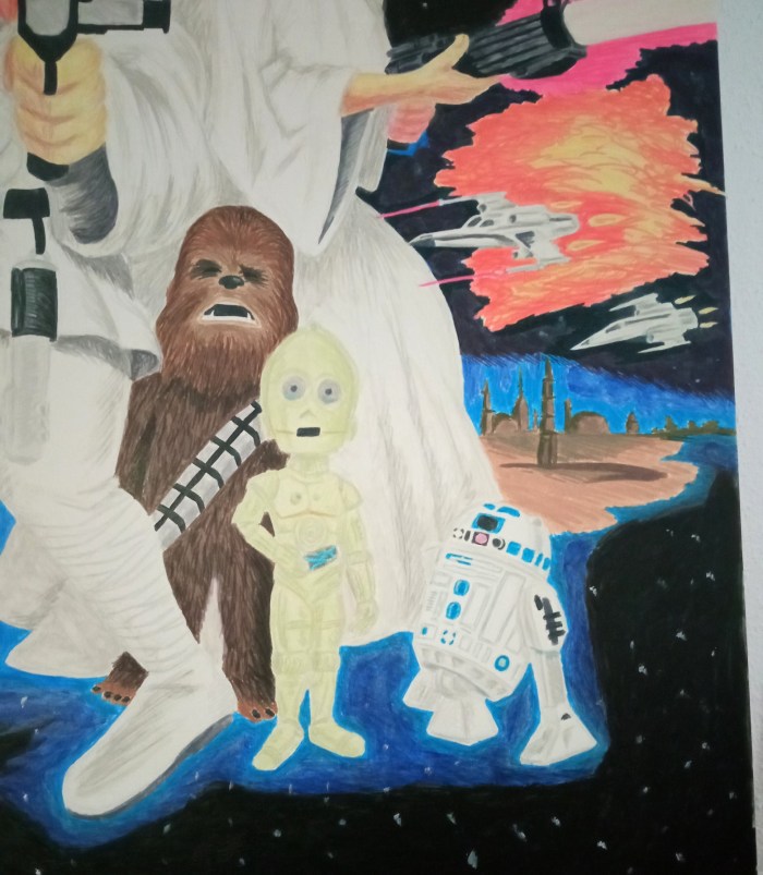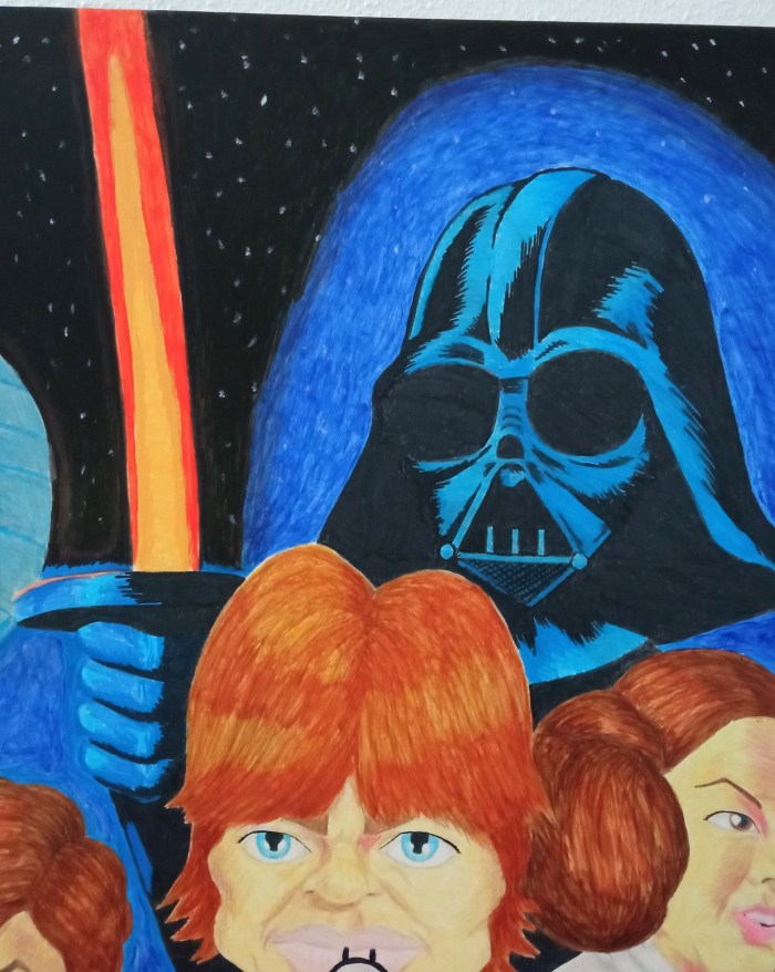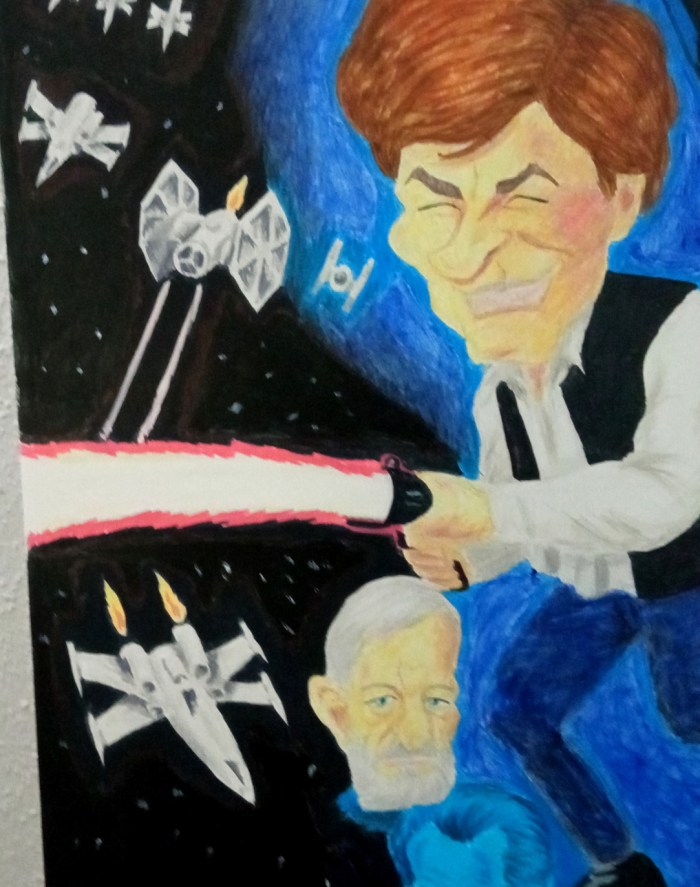 Caricatura gigante de Star Wars. Original de 70×100 cm pintado sobre cartón-pluma de 2mm de grosor.