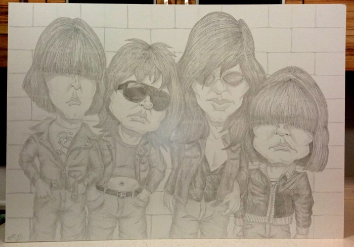 Caricatura gigante de Los Ramones. Original de 70×100 cm pintado sobre cartón-pluma de 2mm de grosor.