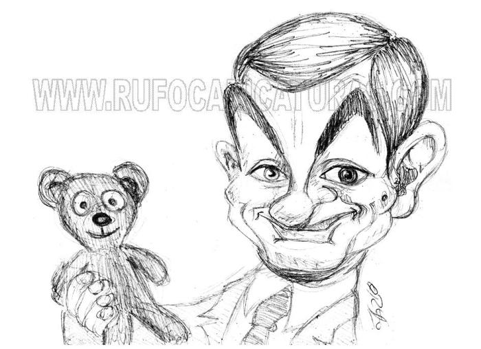 Caricatura de Rowan Atkinson como Mister bean. Lapiz. El original de 20×30 cm está a la venta por 30 €. Posibilidad de colorearlo por 20€ más. Info: rufocaricaturas@gmail.com