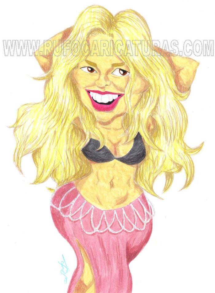 Caricatura de la cantante Shakira. Acrílicos y rotuladores. El original de 30×40 cm está a la venta por 100 €.También disponibles reproducciones tamaño póster (30x40cm, 5€) y mini-prints (10x15cm, 3€) Info: rufocaricaturas@gmail.com