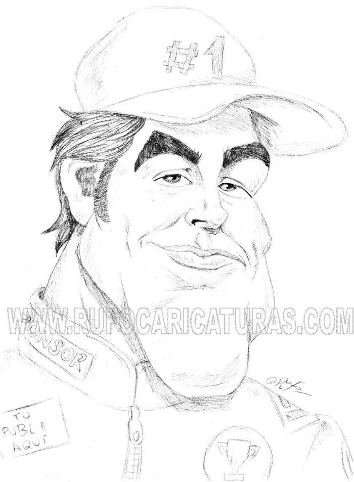 Caricatura del piloto Fernando Alonso. Lápiz. El original de 30×40 cm está a la venta por 60 €. Posibilidad de colorearlo por 20€ más. Info: rufocaricaturas@gmail.com