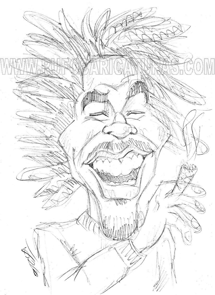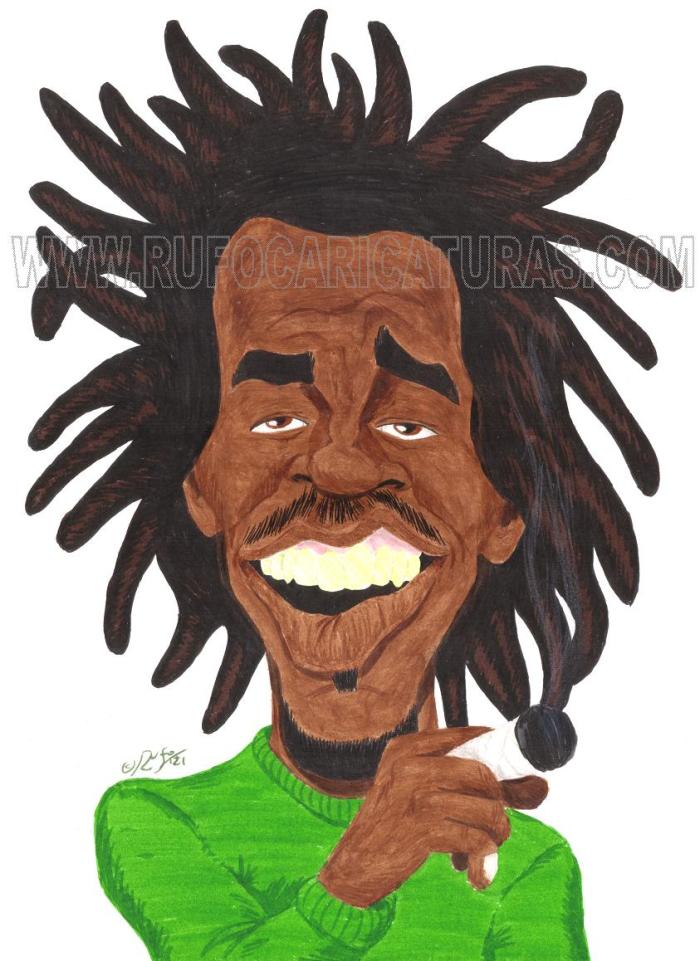 Caricatura del cantante Bob Marley. Acrílicos y rotuladores. El original de 30×40 cm está a la venta por 100 €.También disponibles reproducciones tamaño póster (30x40cm, 5€) y mini-prints (10x15cm, 3€) Info: rufocaricaturas@gmail.com