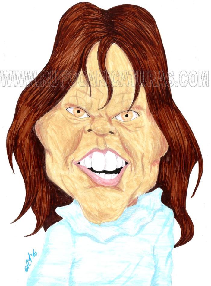 Caricatura de la pelicula El Exorcista. Acrílicos y rotuladores. El original de 30×40 cm está a la venta por 100 €.También disponibles reproducciones tamaño póster (30x40cm, 5€) y mini-prints (10x15cm, 3€) Info: rufocaricaturas@gmail.com