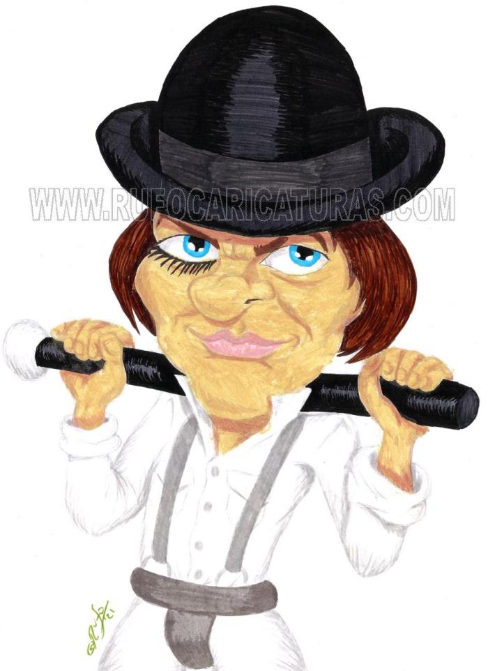 Caricatura de la pelicula La naranja mecanica. Acrílicos y rotuladores. El original de 30×40 cm está a la venta por 100 €.También disponibles reproducciones tamaño póster (30x40cm, 5€) y mini-prints (10x15cm, 3€) Info: rufocaricaturas@gmail.com