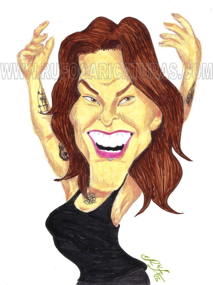 Caricatura de la Mari de Chambao. Acrílicos y rotuladores. El original de 20×30 cm está a la venta por 50 €. Info: rufocaricaturas@gmail.com