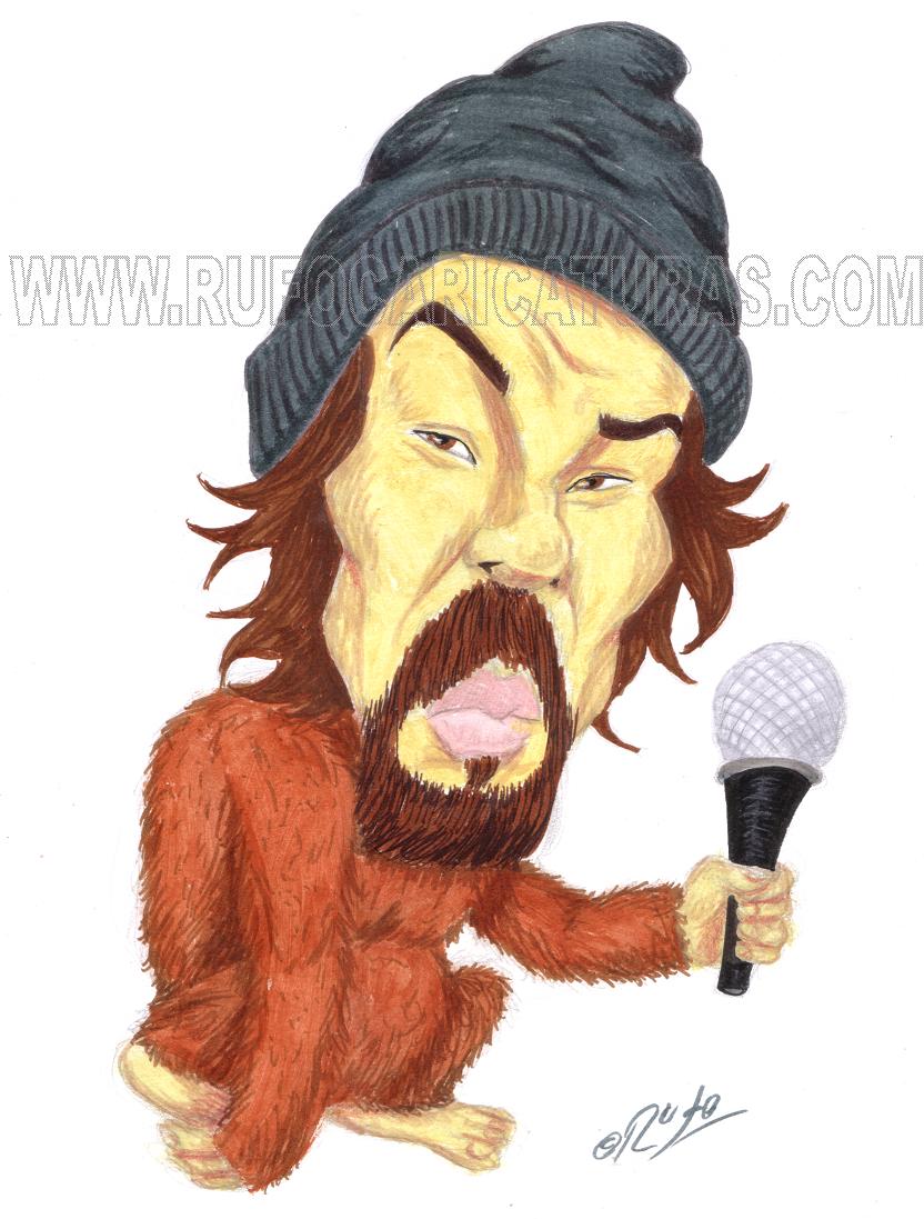 Caricatura del cantante Macaco. Acrílicos y rotuladores. El original de 20×30 cm está a la venta por 50 €. Info: rufocaricaturas@gmail.com