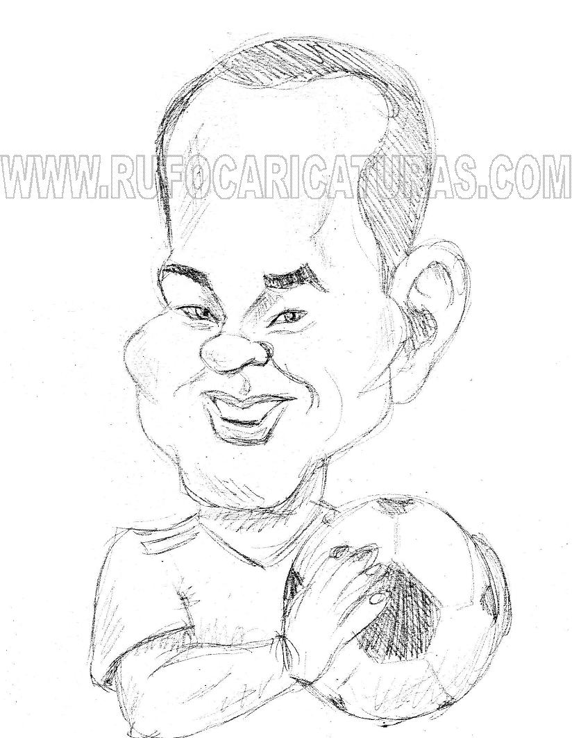 Caricatura del futbolista Andres Iniesta. lapiz. El original de 20×30 cm está a la venta por 30 €. Info: rufocaricaturas@gmail.com