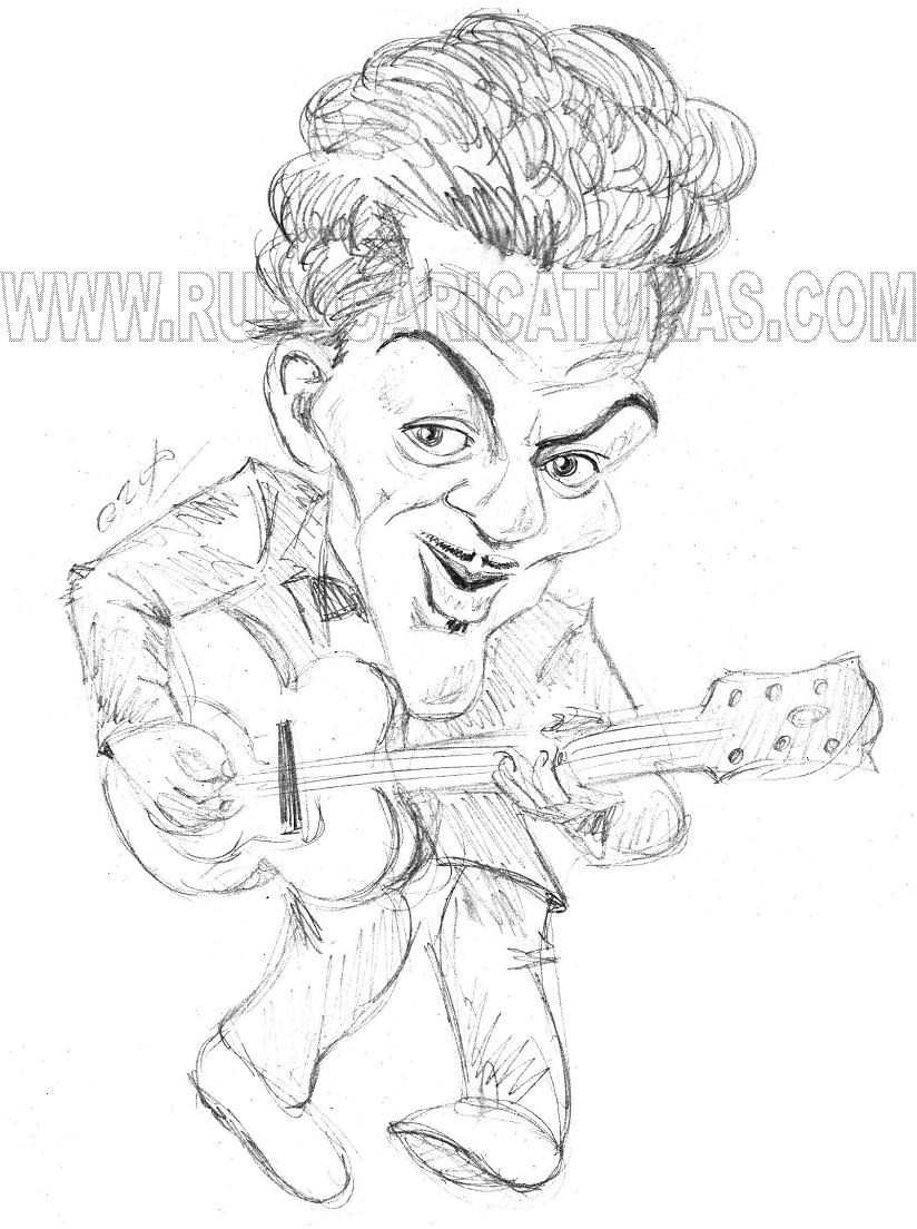 Caricatura del cantante Chuck Berry. lapiz. El original de 20×30 cm está a la venta por 30 €. Info: rufocaricaturas@gmail.com