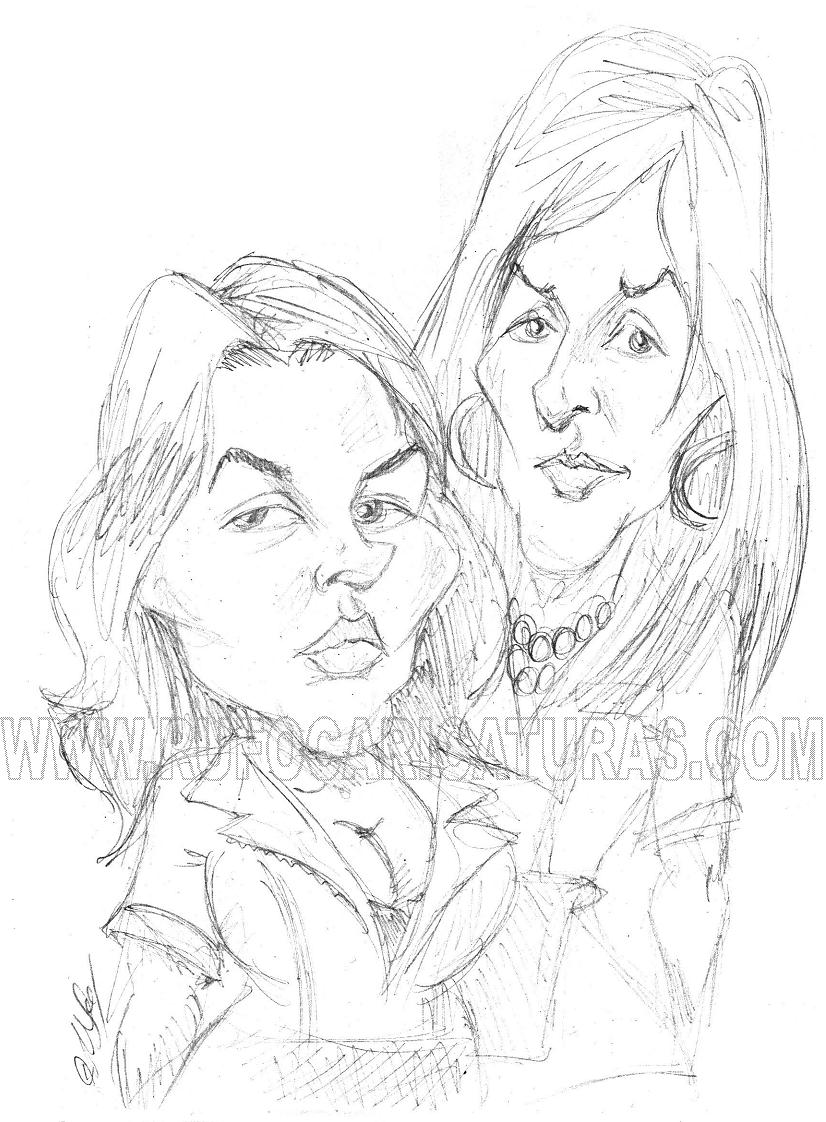 Caricatura de la serie Dos chicas sin blanca. lapiz. El original de 20×30 cm está a la venta por 40 €. Info: rufocaricaturas@gmail.com