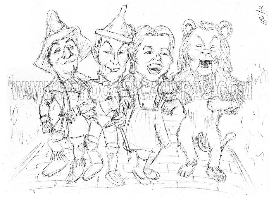 Caricatura de la pelicula El mago de Oz. lapiz. El original de 20×30 cm está a la venta por 30 €. Info: rufocaricaturas@gmail.com