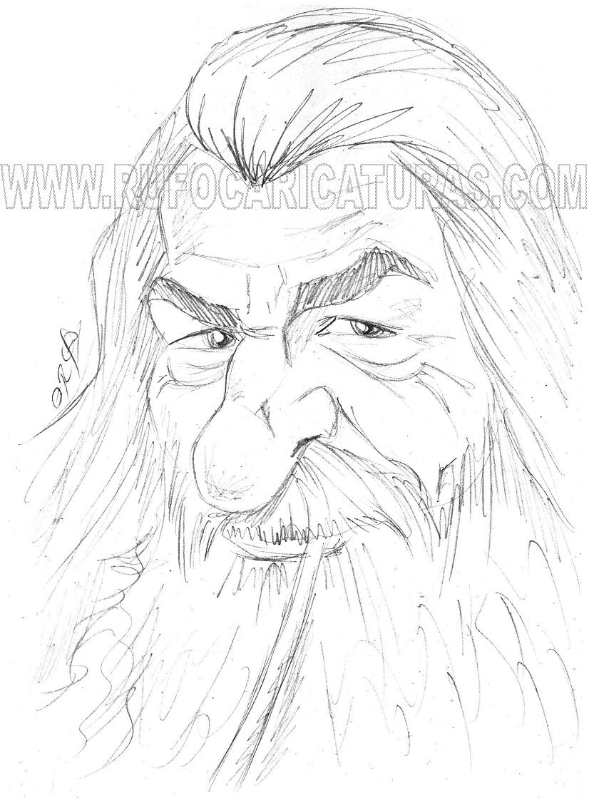 Caricatura de Gandalf. lapiz. El original de 20×30 cm está a la venta por 30 €. Info: rufocaricaturas@gmail.com