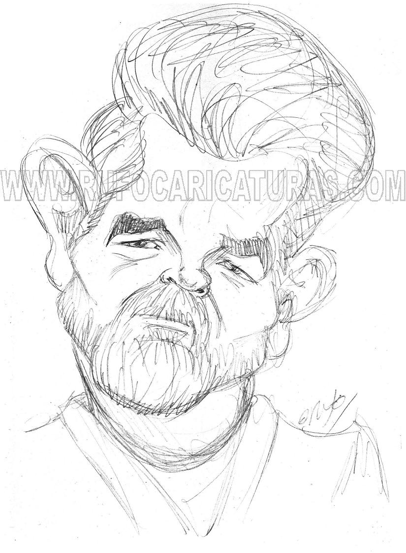 Caricatura del director George Lucas. lapiz. El original de 20×30 cm está a la venta por 30 €. Info: rufocaricaturas@gmail.com
