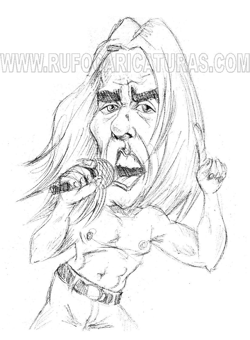 Caricatura del cantante Iggy pop. lapiz. El original de 20×30 cm está a la venta por 30 €. Info: rufocaricaturas@gmail.com