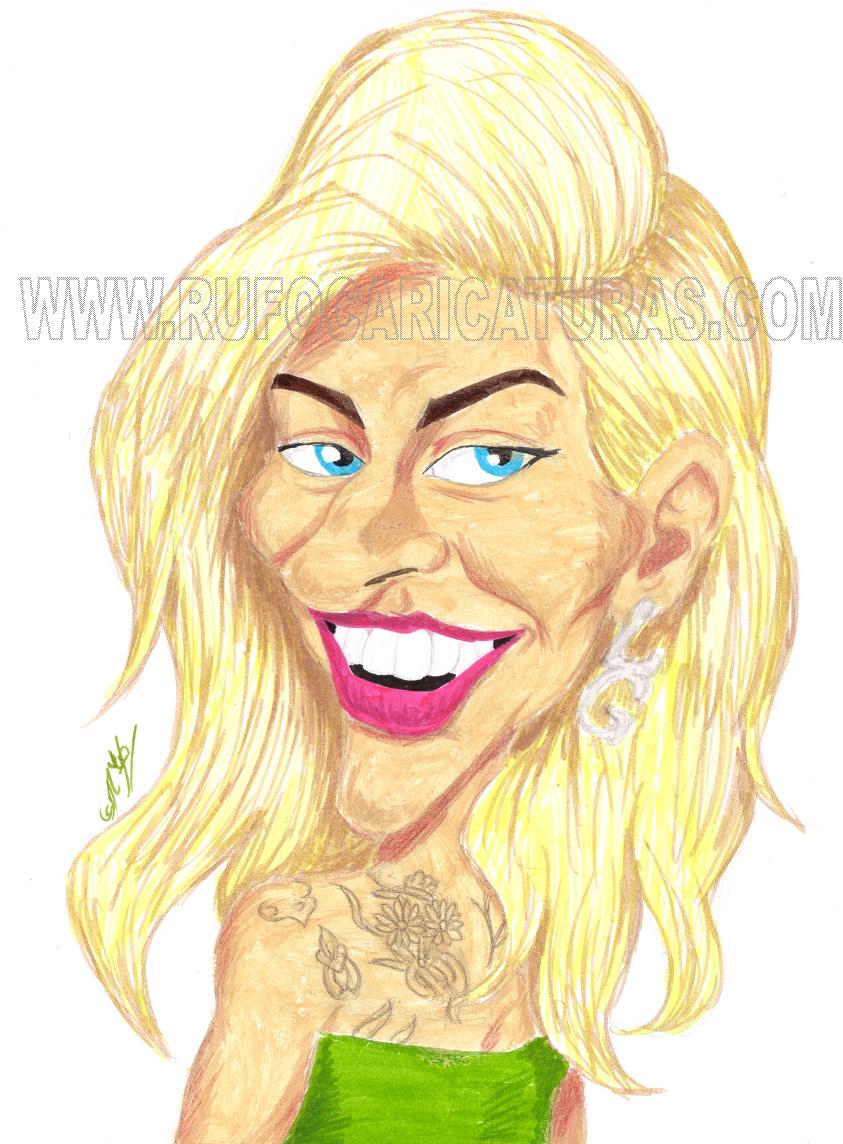 Caricatura de la cantante Lady Gaga. Acrílicos y rotuladores. El original de 30×40 cm está a la venta por 100 €. Info: rufocaricaturas@gmail.com