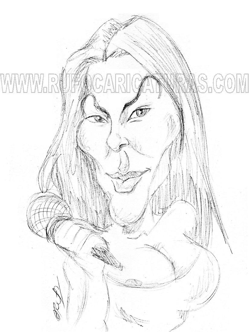Caricatura de la cantante Monica Naranjo. lapiz. El original de 20×30 cm está a la venta por 30 €. Info: rufocaricaturas@gmail.com