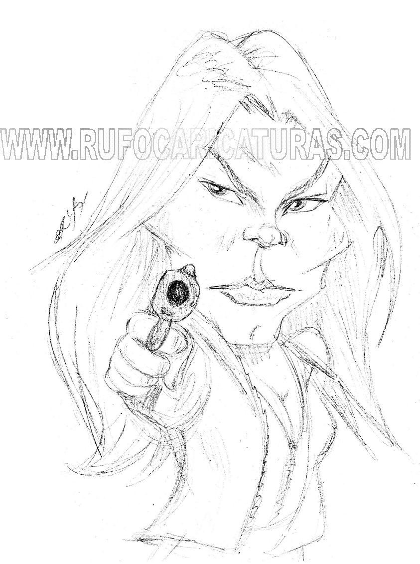 Caricatura de Peta Wilson en la serie Nikita. lapiz. El original de 20×30 cm está a la venta por 30 €. Info: rufocaricaturas@gmail.com
