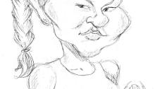 Caricatura de la luchadora Charlotte Fair. Lápiz. El original de 20×30 cm está a la venta por 30 €. Posibilidad de colorearlo por 20€ más. Info: rufocaricaturas@gmail.com
