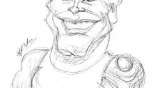 Caricatura del luchador y actor Dave Batista. Lápiz. El original de 20×30 cm está a la venta por 30 €. Posibilidad de colorearlo por 20€ más. Info: rufocaricaturas@gmail.com