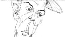 Caricatura de Johnny Weismuller como Tarzan. Lápiz. El original de 20×30 cm está a la venta por 30 €. Posibilidad de colorearlo por 20€ más. Info: rufocaricaturas@gmail.com
