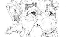 Caricatura del actor Leslie Nielsen. Lápiz. El original de 20×30 cm está a la venta por 30 €. Posibilidad de colorearlo por 20€ más. Info: rufocaricaturas@gmail.com