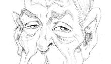 Caricatura del actor Sam Neill. Lápiz. El original de 20×30 cm está a la venta por 30 €. Posibilidad de colorearlo por 20€ más. Info: rufocaricaturas@gmail.com