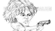 Caricatura de la actriz Michelle Rodriguez en Machete. Lápiz. El original de 20×30 cm está a la venta por 30 €. Posibilidad de colorearlo por 20€ más. Info: rufocaricaturas@gmail.com