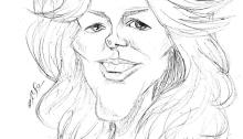 Caricatura de la modelo rachel Hunter. Lápiz. El original de 20×30 cm está a la venta por 30 €. Posibilidad de colorearlo por 20€ más. Info: rufocaricaturas@gmail.com