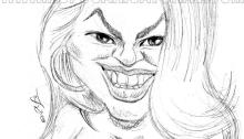 Caricatura de la modelo Jodie Marsh. Lápiz. El original de 20×30 cm está a la venta por 30 €. Posibilidad de colorearlo por 20€ más. Info: rufocaricaturas@gmail.com